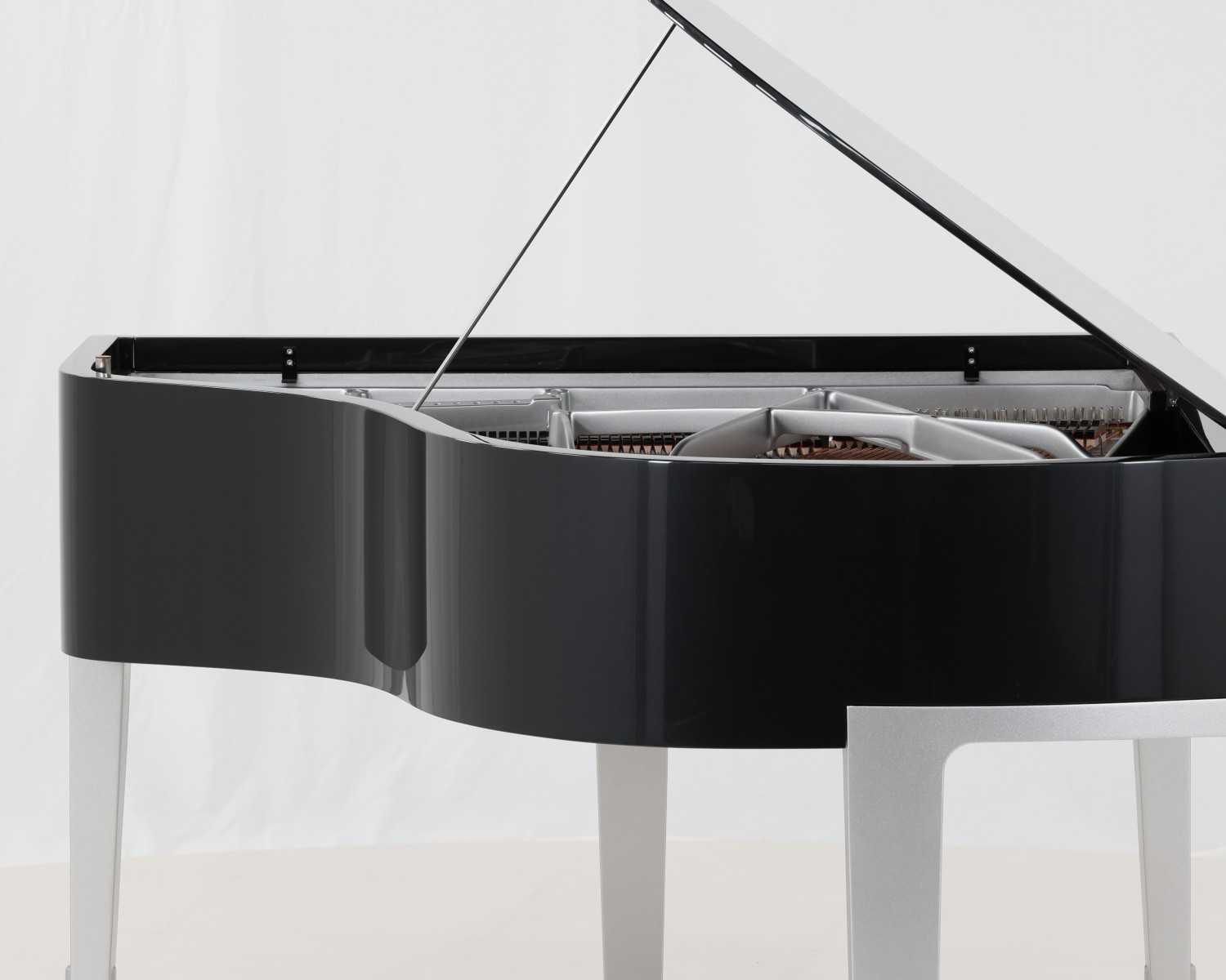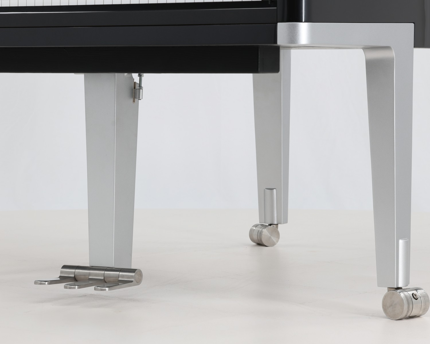 The metallic diamond black finish gives the piano a bold, contemporary character and draws attention from every angle. Every detail reflects a careful balance between form and function, creating an instrument that is as visually compelling as it is musically refined.