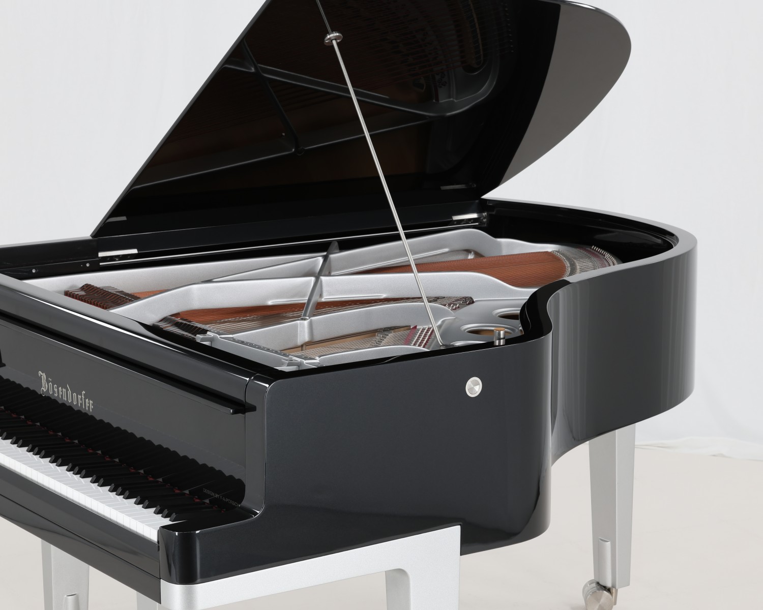 Beneath its contemporary design, the piano delivers the unmistakable Bösendorfer voice. It produces a rich, warm tone full of colour, with a resonant bass, a singing middle register and a clear, refined treble. The instrument offers exceptional depth and nuance, allowing the pianist to shape sound with sensitivity and control.