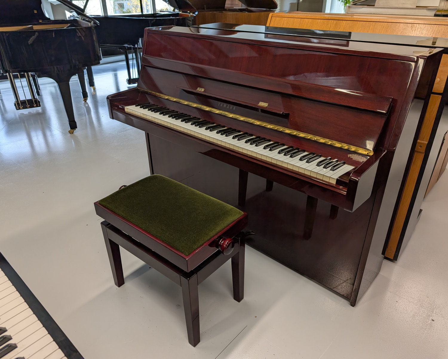 The Yamaha M1J is a compact, elegant upright piano offering the renowned quality of Japanese-built Yamaha craftsmanship. Although styled similarly to today’s Yamaha B1, this model is a superior instrument, benefiting from the precision, materials, and build quality associated with Yamaha’s Japanese factories – making it an excellent choice for players seeking reliability and musical refinement in a smaller footprint.